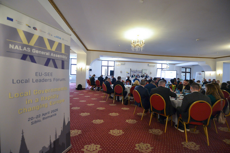 У роботі XXI Генеральній асамблеї Мережі асоціацій місцевих влад Південно-Східної Європи (NALAS) та Форумі місцевих лідерів, що об’єднали представників асоціацій місцевого самоврядування з країн ЄС, Східного партнерства та Південно-Східної Європи в румунському місті Сібіу 20- 22 квітня 2026 року, взяла участь делегація Асоціації міст України.