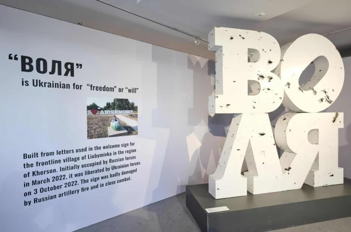 У штаб-квартирі НАТО, в Брюсселі, представили створену з обстріляних літер колишнього знаку «Я люблю Любимівку» села Любимівка члена Асоціації міст України - Нововоронцовської селищної територіальної громади Херсонської області - мистецьку інсталяцію «Воля».