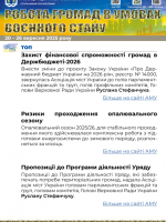 ![]() РОБОТА ГРОМАД В УМОВАХ ВОЄННОГО СТАНУ - електронний дайджест АМУВипуск за 20 – 26 вересня 2025 року Завантажити |