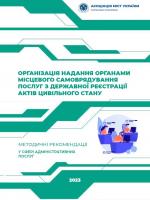 ![]() ОРГАНІЗАЦІЯ НАДАННЯ ОРГАНАМИ МІСЦЕВОГО САМОВРЯДУВАННЯ ПОСЛУГ З ДЕРЖАВНОЇ РЕЄСТРАЦІЇ АКТІВ ЦИВІЛЬНОГО СТАНУМетодичні рекомендації у сфері адміністративних послуг Завантажити |