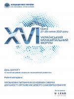 ![]() Проблемні питання в основних сферах діяльності органів місцевого самоврядуванняробочі матеріали до Дня Діалогу в рамках ХVІ Українського муніципального форуму (27-29.07.21, Одеса)