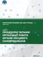 ![]() Процедурні питання організації роботи органів місцевого самоврядуванняПрактичний посібник АМУ для громад (видання третє). Модуль 2.