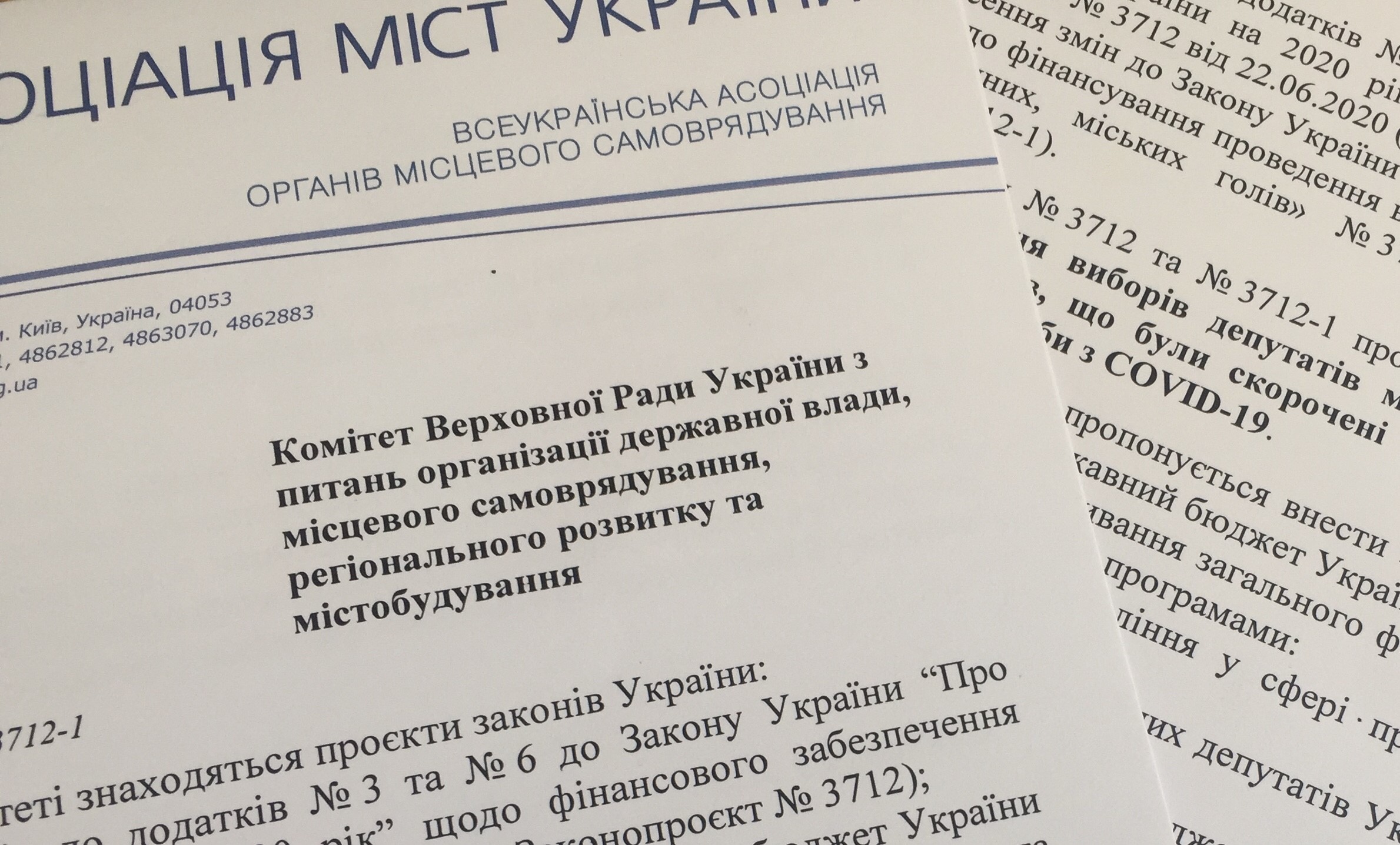 ► «Про внесення змін до додатків № 3 та № 6 до Закону України “Про Державний бюджет України на 2020 рік” щодо фінансового забезпечення проведення виборів» №3712 від 22.06.2020;