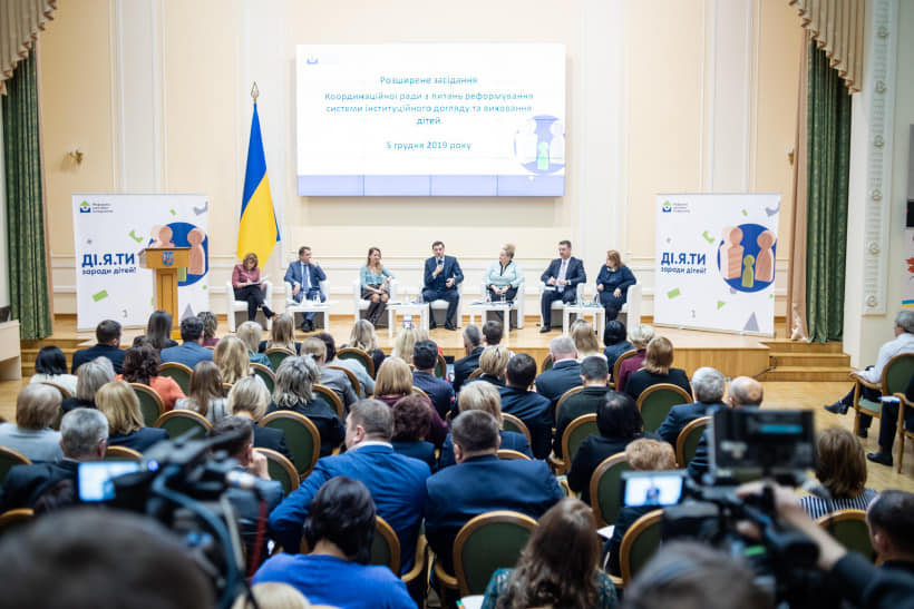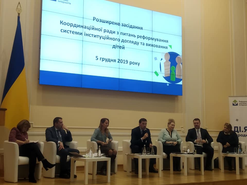У четвер, 5 грудня, відбулось розширене засідання Координаційної ради з питань реформування системи інституційного догляду. Відкрив засідання Прем'єр-міністр України Олексій Гончарук. Він зазначив, що за 4 роки Уряд має вдвічі зменшити кількість інтернатів в Україні. На сьогодні в Україні функціонує 718 інтернатів, у яких перебуває 99,9 тис. дітей. З них більше 90% мають батьків.