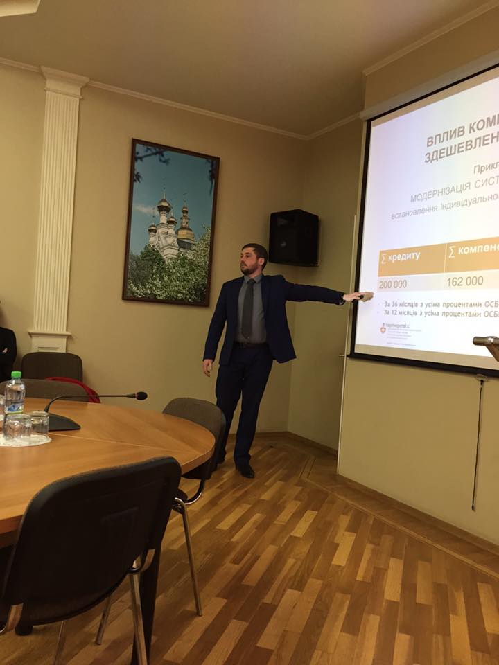 Про фінансову участь органів влади у виконанні робіт по термомодернізації багатоквартирних будинків розказав присутнім регіональний представник інституції IFC Олег Масленников. «Проекти з підвищення енергоефективності вигідні і мешканцям будинків, і міської владі. Мешканцям – тому, що будинок стає комфортнішим, а платити за комунальними рахунками треба менше. Міським керманичам – тому, що, споживаючи менше, будинки знижують навантаження на мережі, а, отже, і втрати тепла в останніх стають меншими. Так що вигода очевидна», - переконує експерт, наводячи реальні приклади у місті Харкові.