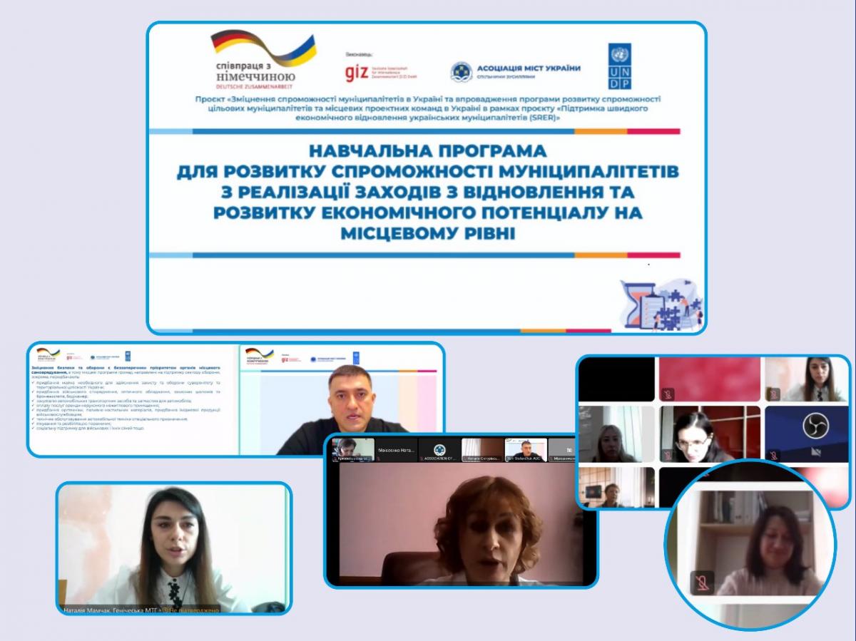 Вебінар відбувся в межах Проєкту «Зміцнення спроможності муніципалітетів в Україні» та впровадження програми розвитку спроможності цільових муніципалітетів та місцевих проєктних команд в Україні, який втілюється в межах проєкту «Підтримка швидкого економічного відновлення українських муніципалітетів» (SRER).