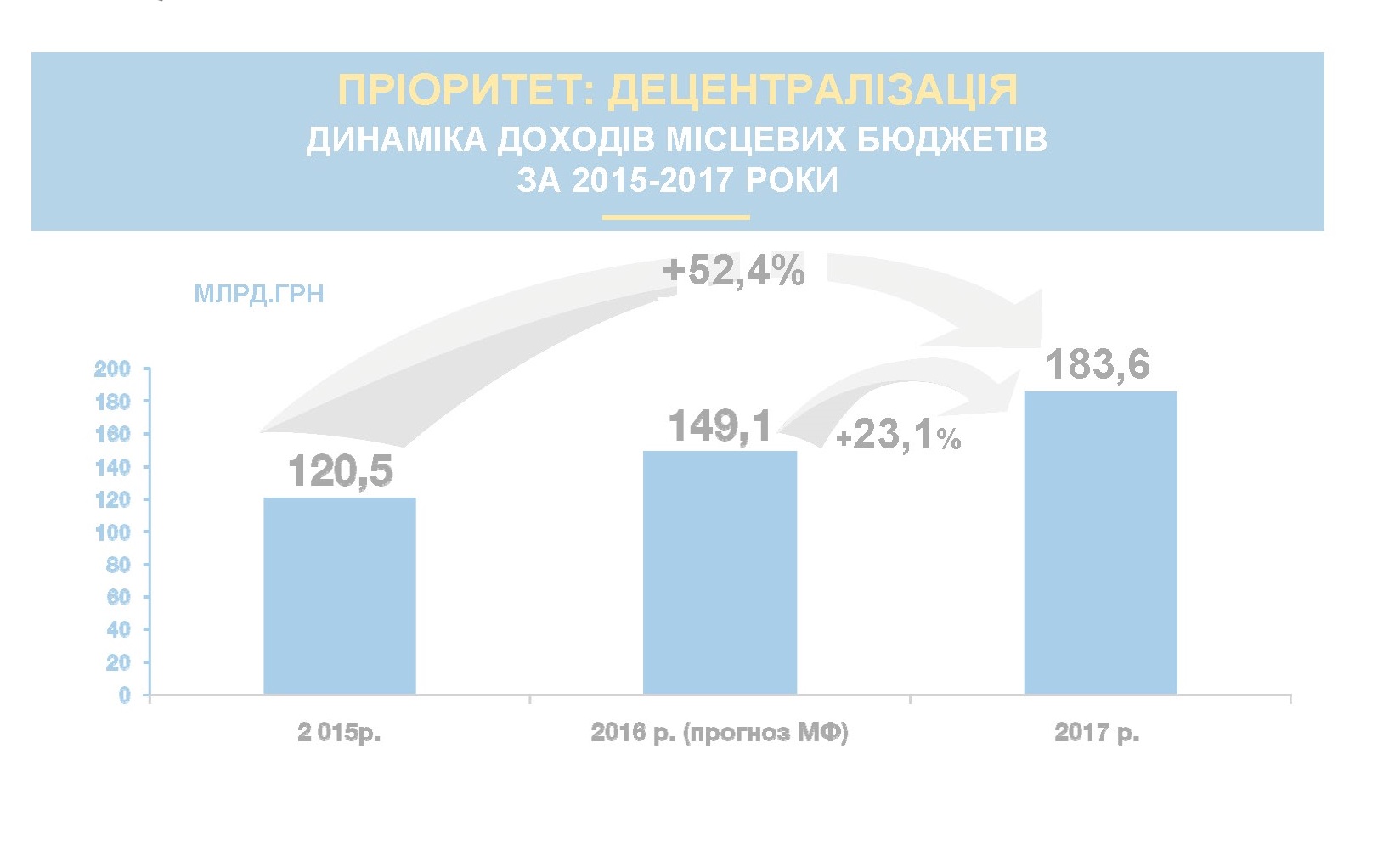 З 2015 року, коли була розпочата фінансова децентралізація, місцеві бюджети зросли на 52%. Цього року місцеві бюджети будуть зростати ще на 24%.