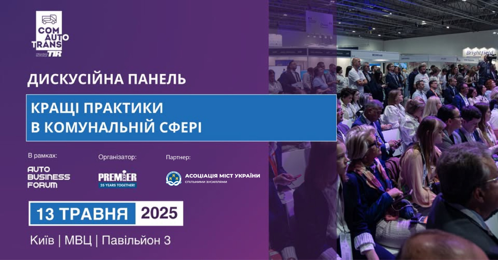 13 травня 2025 року під час дискусійної панелі «Кращі практики в комунальній сфері», яка відбудеться в межах Auto Business Forum, своїм досвідом та напрацюваннями поділяться представники громад – члени Асоціації міст України.
