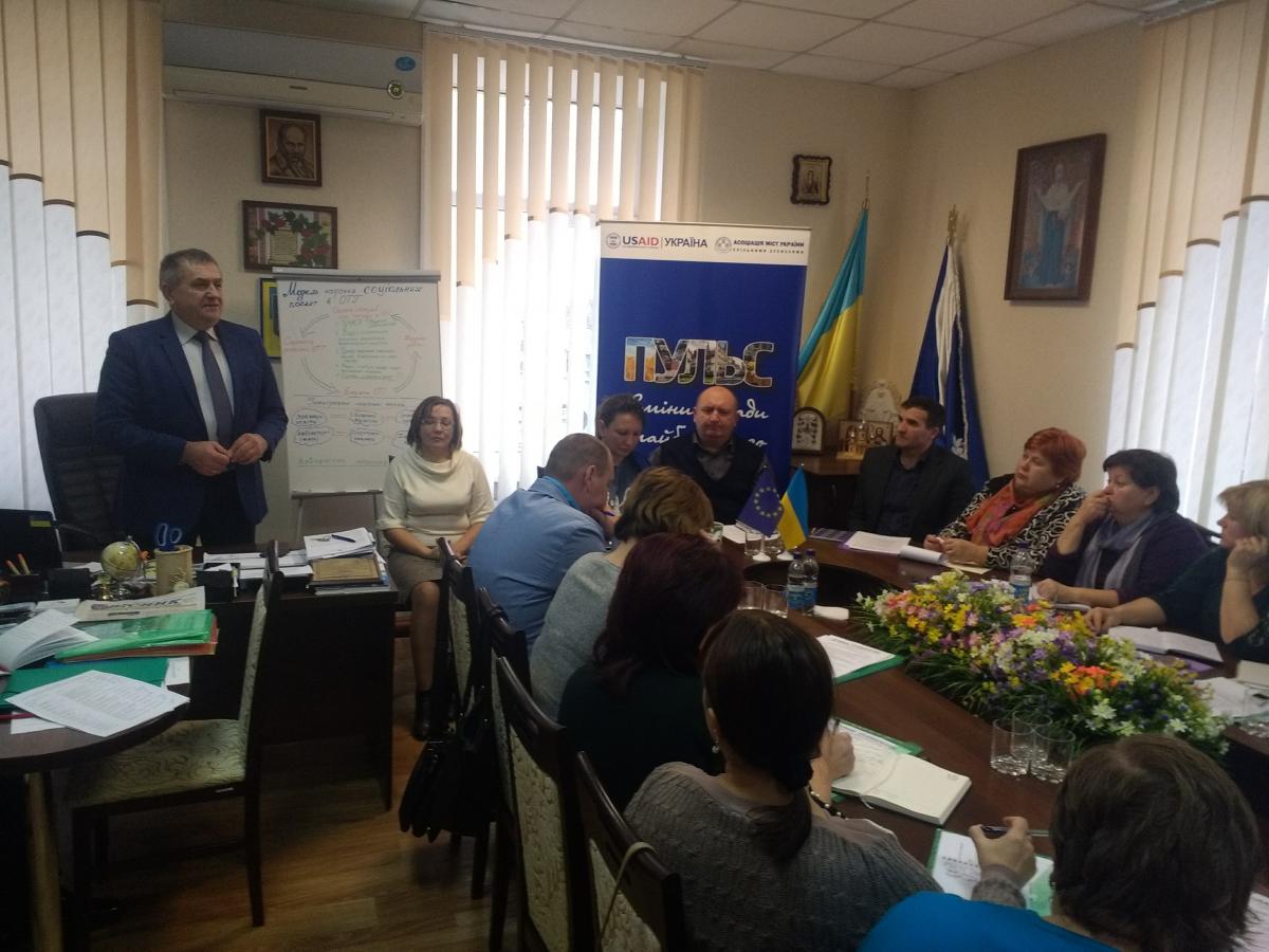 30 листопада у Черкаському регіональному відділенні Асоціації міст України відбувся практикум із застосування законодавства на тему: «Особливості організації системи соціального захисту в ОТГ». Захід організовано в рамках Проекту «Розробка курсу на зміцнення місцевого самоврядування в Україні (ПУЛЬС)», який реалізує Асоціація міст України за підтримки USAID.