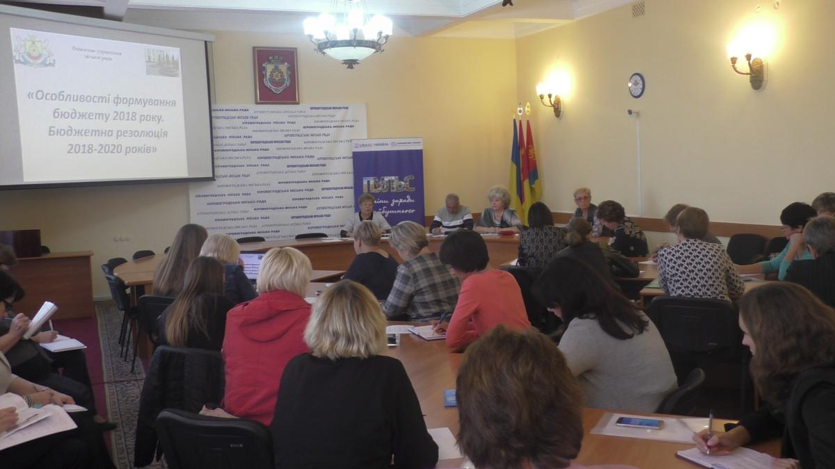 27 вересня у Кіровоградському регіональному відділенні Асоціації міст України відбувся практикум на тему «Особливості формування бюджетів об’єднаних територіальних громад на 2018 рік». Захід організовано в рамках Проекту «Розробка курсу на зміцнення місцевого самоврядування в Україні» (ПУЛЬС), який реалізує Асоціація міст України за підтримки USAID.