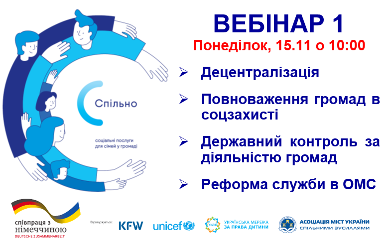 У понеділок, 15 листопада Асоціація міст України проводить перший вебінар із серії загальнонаціональних вебінарів в рамках проєкту «СПІЛЬНО», який впроваджується Дитячим фондом ООН (ЮНІСЕФ).