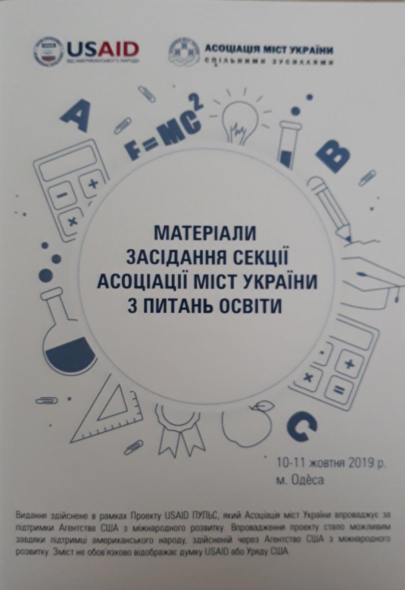 10-11 жовтня 2019 року в Одесі Асоціація міст України в рамках проекту USAID «Розробка курсу на зміцнення місцевого самоврядування в Україні (ПУЛЬС)» проводила засідання Секції АМУ з питань освіти. Участь у заході взяли 68 учасників, серед яких заступники міських голів, голови ОТГ, керівники органів управління освітою міст-членів Асоціації та керівники закладів освіти м. Одеси.