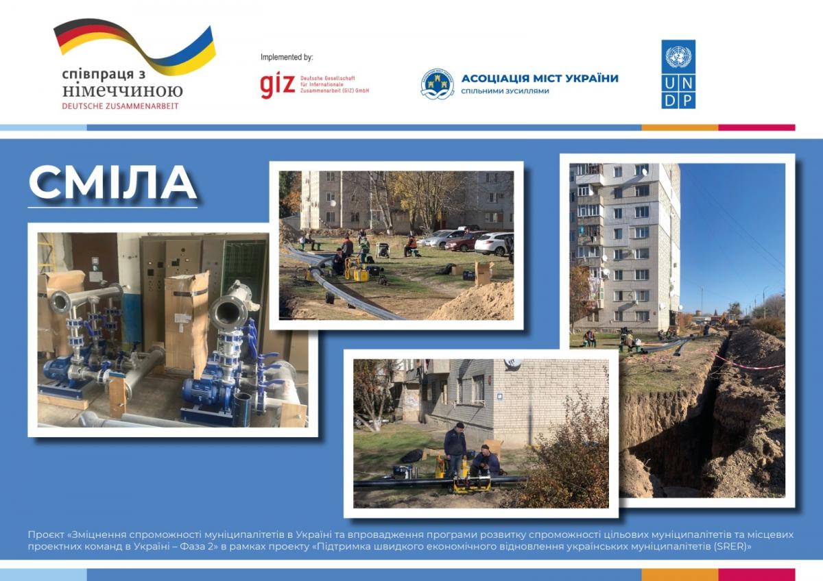 У місті Сміла завершується реконструкція мереж водопостачання на одній із найпроблемніших ділянок міста, придбано генератор для безперебійного водопостачання та проведено ремонт приміщення водонасосної станції.