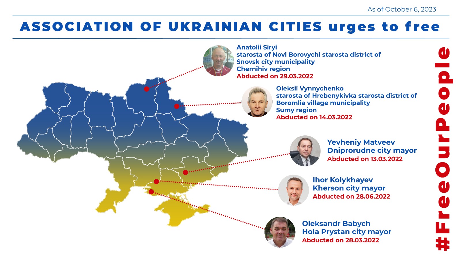 Асоціація міст України системно працює задля звільнення полонених посадовців муніципалітетів, - з початку повномасштабного вторгнення було викрадено 55 посадовців, на сьогодні залишаються поза межами підконтрольній Україні території п’ятеро людей, для повернення яких об’єднані всі зусилля України та її міжнародних партнерів.