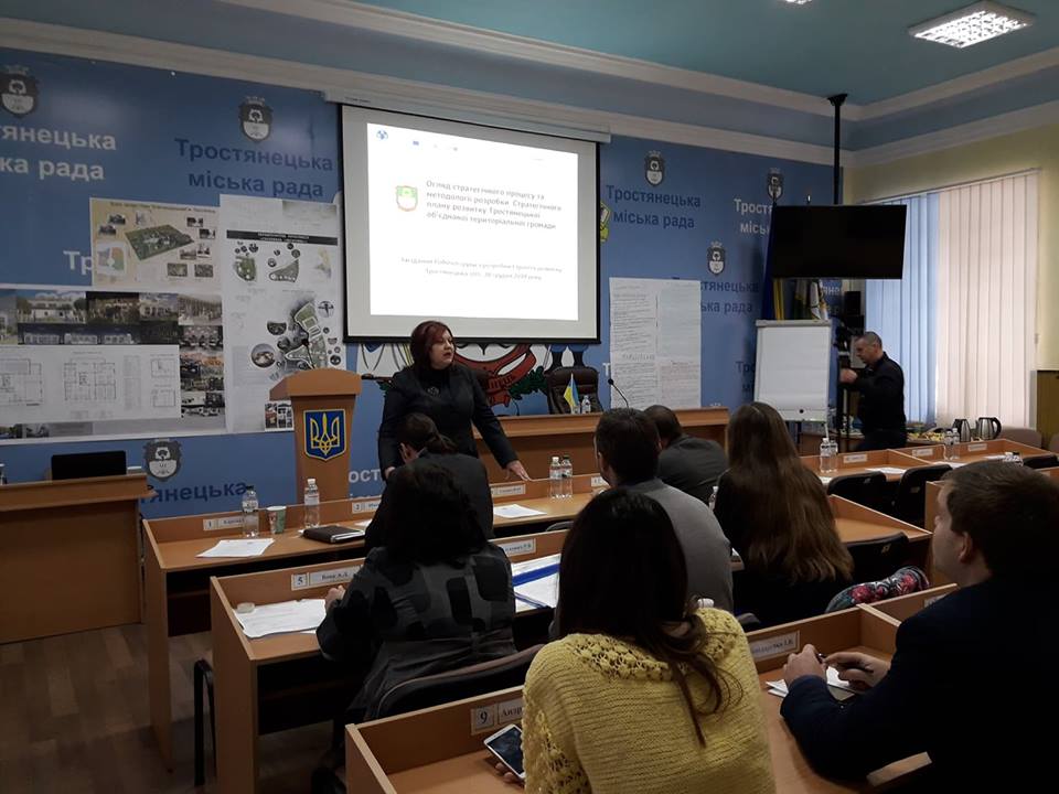Захід відкрив Тростянецький міський голова Юрій Бова, який акцентував на важливості створення стратегічних документів для громади. Під час першого засідання було затверджено методологію стратегічного планування та календарний план діяльності, проведено інструктаж розробки Профілю громади та інструктаж опитування керівників підприємств та підприємців, лідерів громади та мешканців. Друга частина засідання була присвячена спільному формулюванню стратегічного бачення та місії, а також проведенню SWOT - аналізу.
