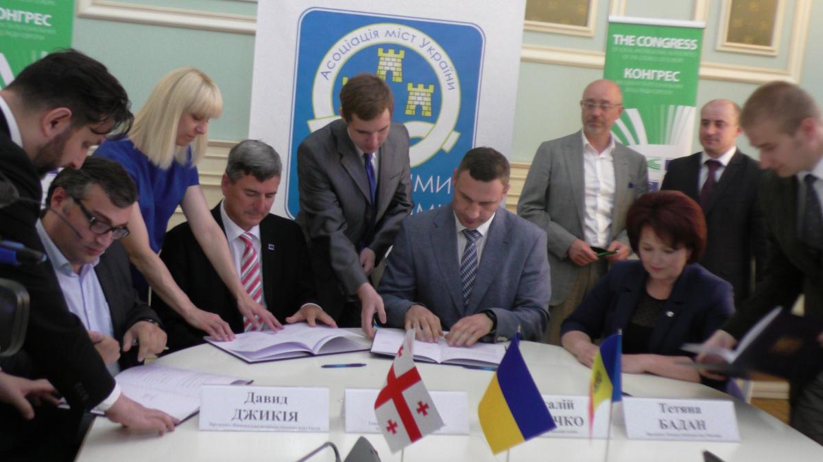 29 червня Київський міський голова Віталій Кличко від імені Асоціації міст України підписав меморандум про взаєморозуміння між асоціаціями органів місцевого самоврядування України, Грузії, Молдови під патронатом Конгресу місцевих та регіональних влад Ради Європи. У підписанні взяли участь Давід Джикія, Президент Національної асоціації місцевих влад Грузії (NALAG), Тетяна Бадан, Президент Конгресу місцевих влад Молдови (CALM), та Андреас Кіфер, Генеральний секретар Конгресу місцевих та регіональних влад Ради Європи. Також були присутні Виконавчий директор Асоціації міст України Олександр Слобожан, Виконавчий директор Національної асоціації органів місцевого самоврядування Грузії Давит Мелуа, представники Секретаріату Конгресу місцевих та регіональних влад, Офісу Ради Європи в Молдові та Офісу Ради Європи в Україні.