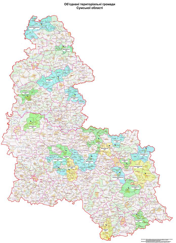 Карта об'єднаних громад Сумщини виглядає так: