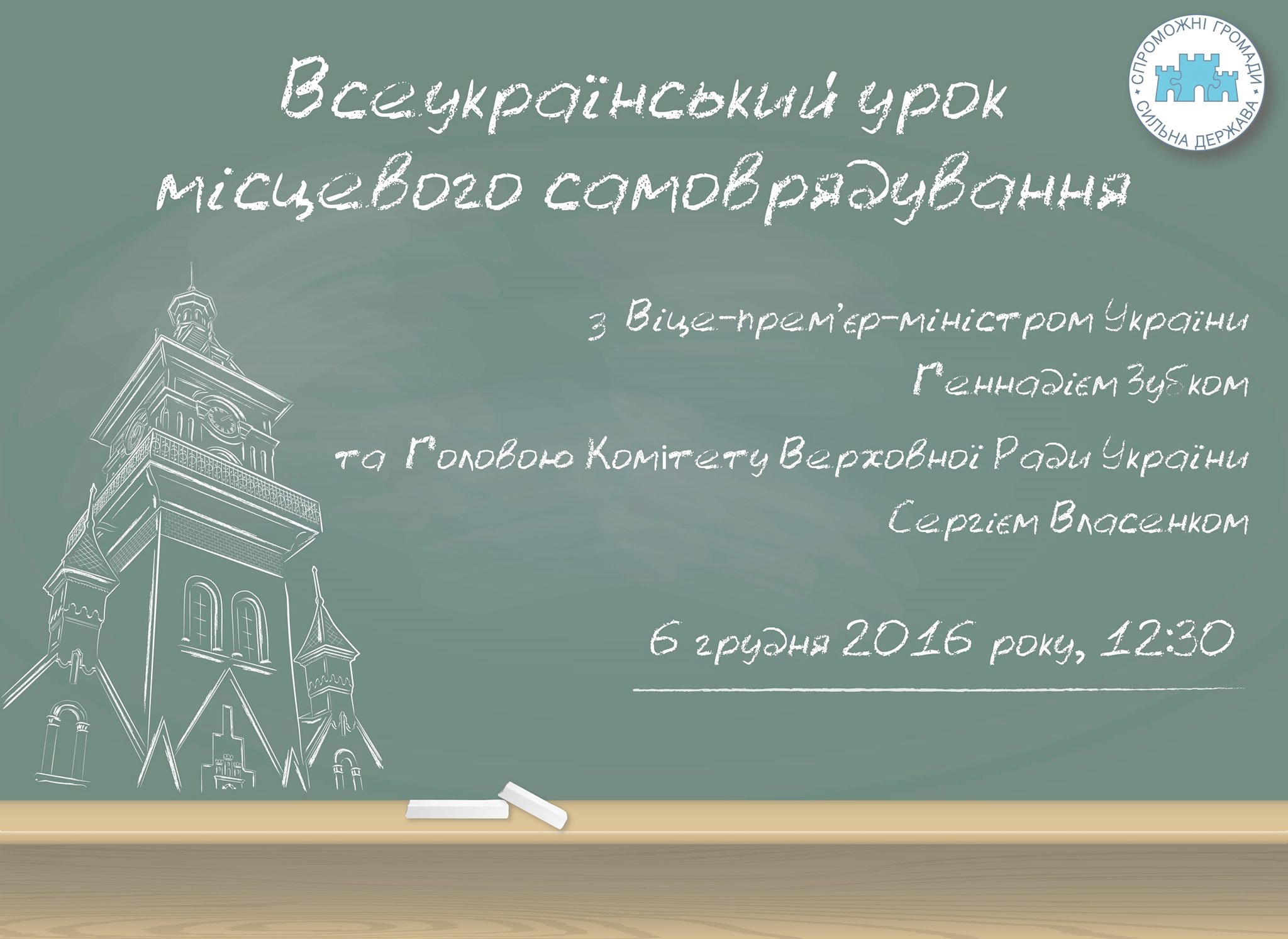 6 грудня Асоціація міст України проводить Всеукраїнський урок місцевого самоврядування. Планується участь Віце-премʼєр-міністра - Міністра регіонального розвитку, будівництва та житлово-комунального господарства України України Геннадія Зубка та Голови Комітету Верховної Ради України з питань державного будівництва, регіональної політики та місцевого самоврядування Сергія Власенка, Виконавчого директора Асоціації міст України Мирослава Пітцика. Учасники Всеукраїнського уроку місцевого самоврядування зможуть ставити запитання до представників влади у режимі он-лайн.