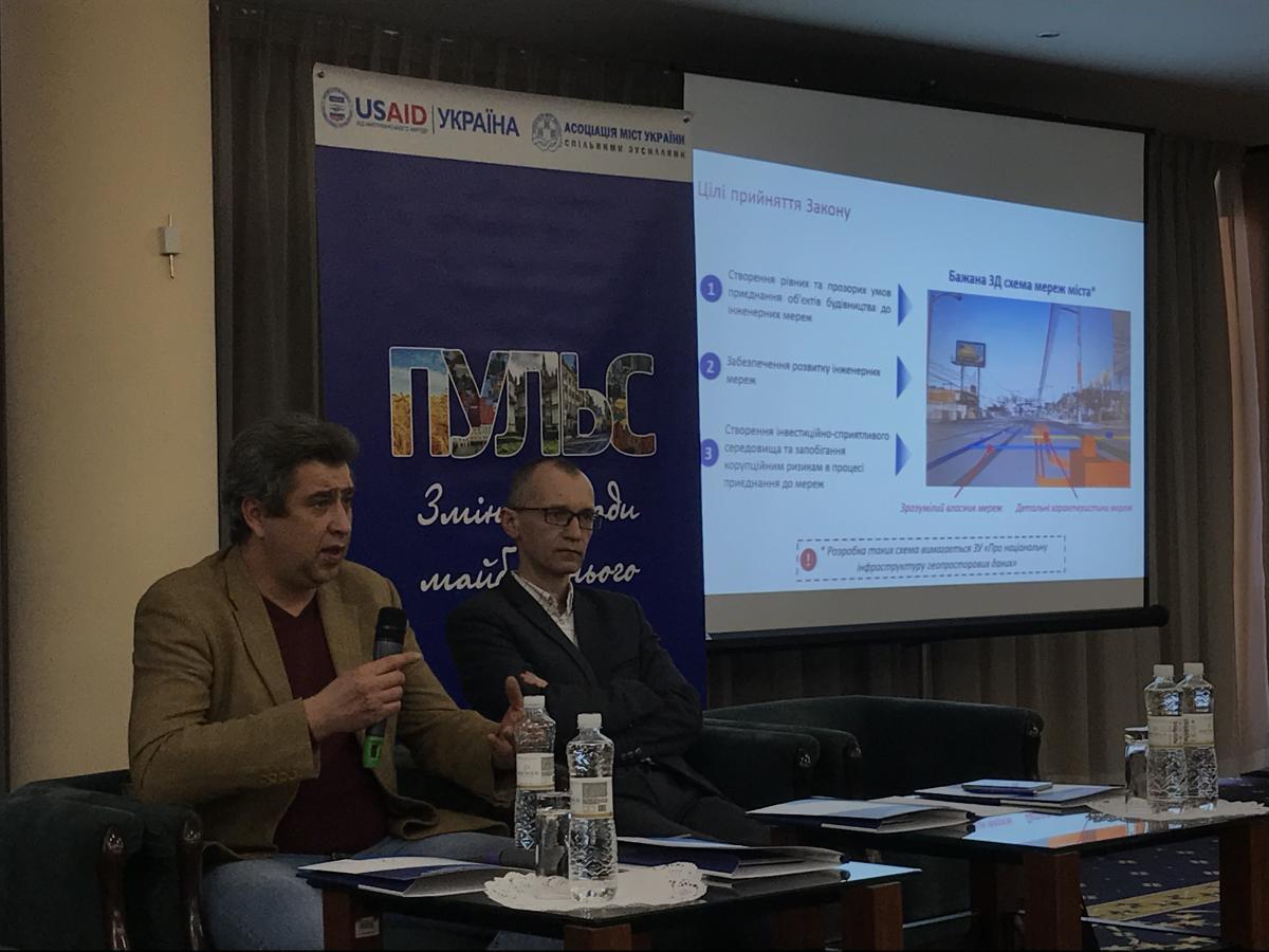 Також на заході відбулося обговорення проєкту Закону «Про внесення змін до деяких законів України щодо врегулювання окремих питань приєднання до інженерних мереж» №5183. Про нього розказав Руслан Голуб, член громадської ради парламентського Комітету з питань організації державної влади, місцевого самоврядування, регіонального розвитку та містобудування; координатор експертної групи з підготовки цього законопроєкту. Експерт додав, що наразі ведеться обговорення щодо концепції та стандартів по приєднанню до інженерних мереж, зокрема проведення їх технічної інвентаризації.