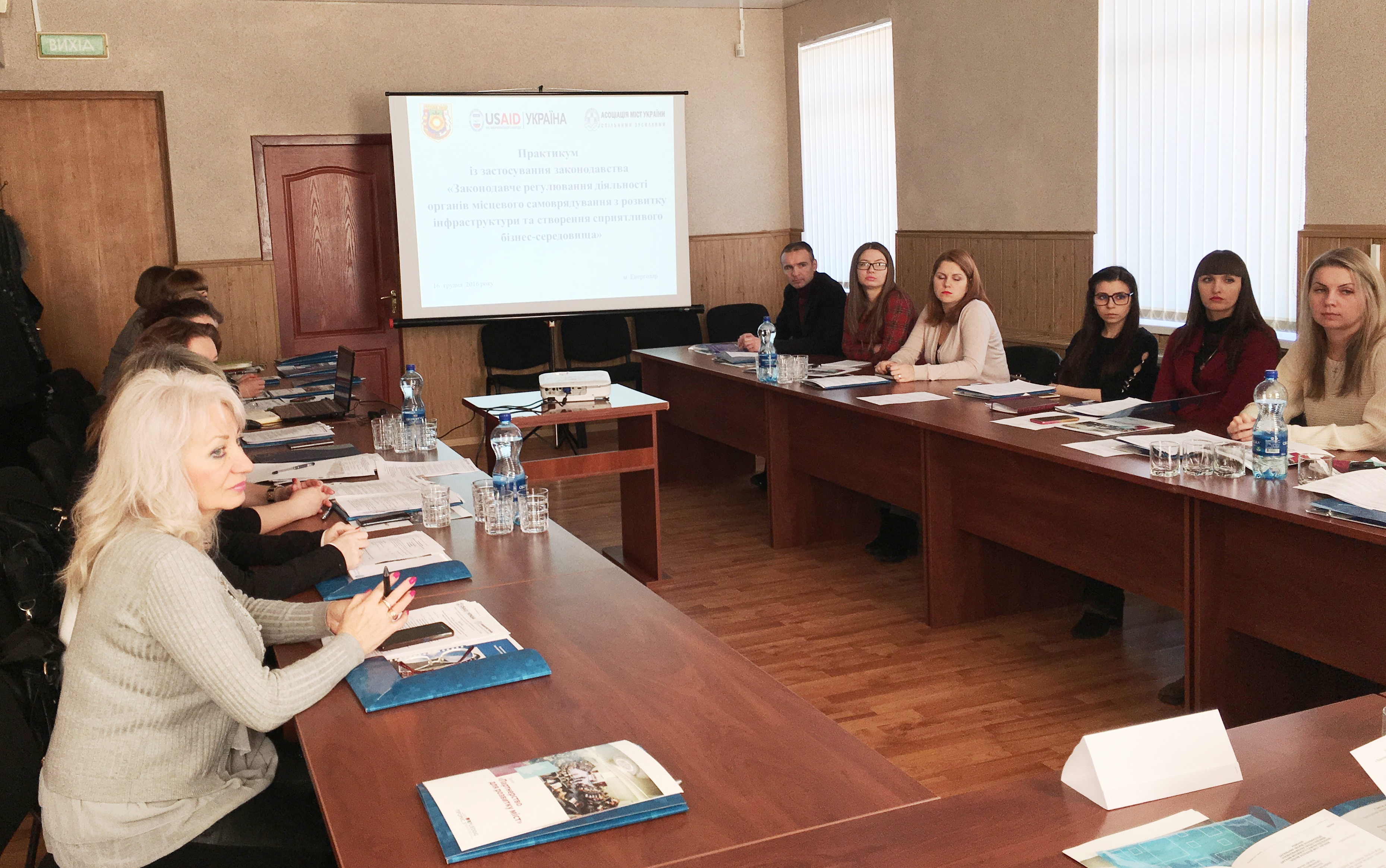 16 грудня в місті Енергодар Запорізьке РВ АМУ в рамках Проекту «ПУЛЬС», що впроваджується АМУ за підтримки USAID, провело практикум із застосування законодавства на тему: "Законодавче регулювання діяльності органів місцевого самоврядування з розвитку інфраструктури та створення сприятливого бізнес-середовища". У засіданні взяли участь представники Запорізького РВ АМУ: міські голови, заступники міських голів, начальники та фахівці структурних підрозділів місцевих рад з питань економіки та залучення інвестицій.