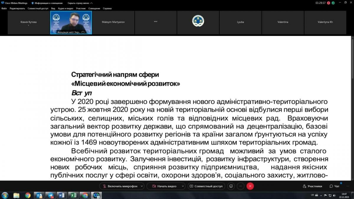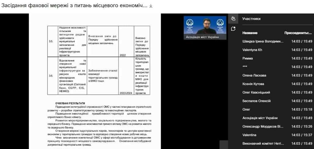 Учасники: представники виконавчих органів з питань економіки сільських, селищних, міських рад, представники Міністерства розвитку громад та територій України та профільних установ.