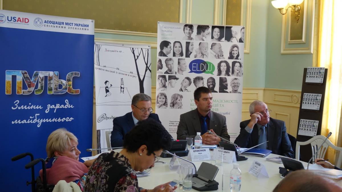 29 вересня в Київській міській державній адміністрації відбулось засідання круглого столу на тему «Зробити Київ дружнім і безбар'єрним. Успішний регіональний та зарубіжний досвід» у рамках дводенного практикуму із галузевої законотворчості та адвокасі з питань соціального захисту населення для фахівців органів місцевого самоврядування. Захід організовано спільно з Асоціацією міст України в рамках проекту USAID «Розробка курсу на зміцнення місцевого самоврядування в Україні (ПУЛЬС)».
