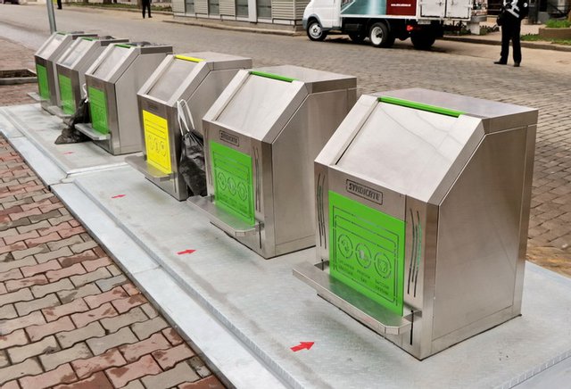 Нові системи для збору твердих побутових відходів є антивандальними, але поряд з гідравлікою, обладнані ще і електроприводом. Комплекс має автономну платформу на 3 контейнери для відходів обсягом 1.1 куб.м, системою контролю наповнення контейнерів, датчиком оповіщення про наповнюваність і спорожнення контейнерів, а також пультом дистанційного підйому. Надземна частина включає розміщення 3 баків-приймачів, обладнаних Led-підсвічуванням, інформаційними наклейками про вид відходів, 4 сонячними батареями і системою Wi-Fi. Контейнери використовуються повністю автономно. Коли контейнер заповнений, Led-підсвічування змінює зелений колір на червоний, а кришка блокується.
