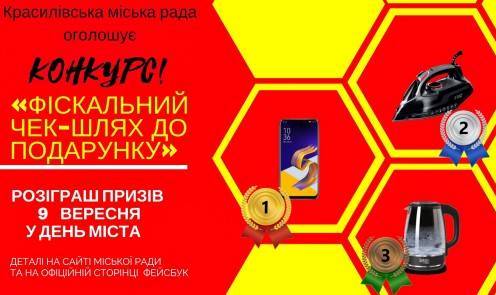 Красилівська міська рада стимулює надходження від акцизного збору з продажу алкоголю і тютюну через оголошення конкурсу. Щоб стати учасником розіграшу та отримати цінний подарунок, а саме: смартфон, електрочайник або праску, необхідно придбати підакцизний товар (сигарети, алкоголь), зберегти фіскальний чек, вказати на звороті своє ім’я та номер телефону та покласти чек у скриньку, що розташовані у магазинах з такими товарами.