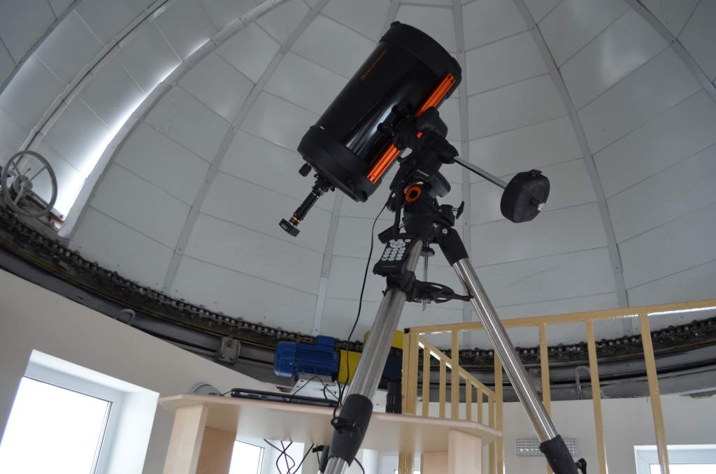- телескоп СелестронEdgeHD800CG - 5 (самонавідний, вбудований GPS-модуль, програма дистанційного управління телескопом NexRemote и кабель телескоп-компьютер, обладнаний фотокамерою, для спостереження за об’єктами далекого космосу). Встановлений стаціонарно під куполом, включений в мережу з комп’ютерами обсерваторії та комп’ютерним класом школи;